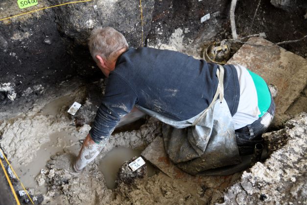 An zwei Stellen erfasste die Grabung auch die tiefer liegende Schicht der Jungsteinzeit (ca. 4000–3800 v. Chr.). Dokumentiert wurden zwei Holzlagen mit Lehmaufträgen, bei denen es sich vermutlich um ehemalige Herdstellen handelt. In dieser Schicht erschienen auch Holzpfähle, den tragenden Elementen der Pfahlbauten. Proben dieser Pfähle werden zurzeit im Labor für Dendrochronologie der Stadt Zürich untersucht. Im Idealfall lassen sie sich jahrgenau datieren. Das jungneolithische Fundspektrum umfasst mehrere Steinbeilklingen, Keramikscherben, Knochen- und Feuersteinartefakte. Als äusserst seltener Fund ist eine vollständige Beilklinge aus Feuerstein zu nennen. In den Schichten haben sich auch zahlreiche pflanzlichen Reste erhalten, die zurzeit an der Universität Basel untersucht werden. Damit lässt sich die Ernährung und das damalige Landschaftsbild rekonstruieren.